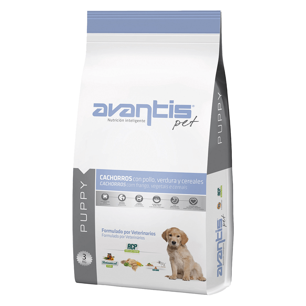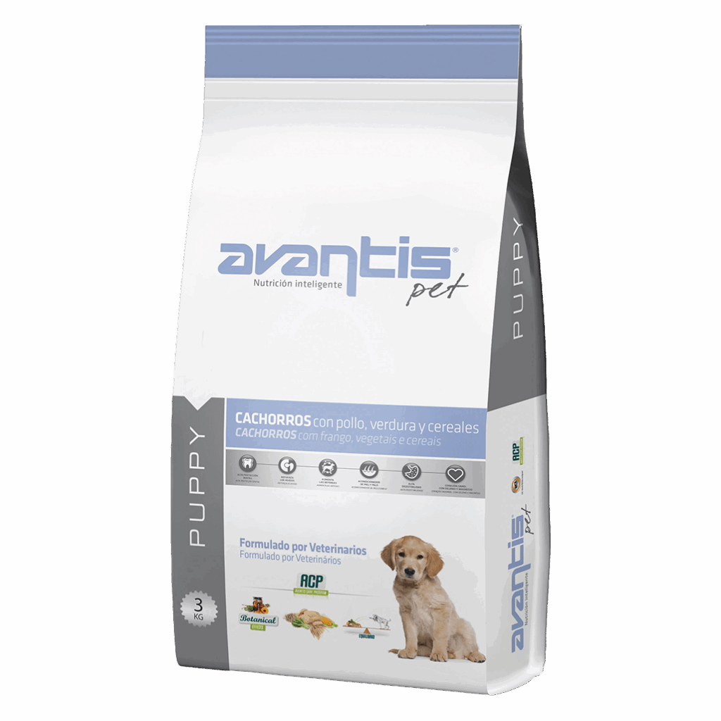 Το Avantis Puppy είναι μια ολοκληρωμένη και ισορροπημένη φόρμουλα, ειδικά σχεδιασμένη για κουτάβια από 2 έως 12 μηνών, που προσφέρει όλα τα απαραίτητα θρεπτικά συστατικά για σωστή ανάπτυξη και υγιή σκελετική και μυϊκή εξέλιξη. Είναι επίσης κατάλληλη για έγκυες ή θηλάζουσες μητέρες. Η αποκλειστική μας επιλογή φυσικών συστατικών κορυφαίας ποιότητας, συνδυασμένων αρμονικά με φαρμακευτικά φυτά, προσφέρει την καλύτερη φυσική φροντίδα και υποστήριξη για τα κουτάβια. Το Avantis Puppy προσφέρει τριπλή δράση που ενισχύει το ανοσοποιητικό, διευκολύνει την πέψη και συμβάλλει σε ισχυρή αντιοξειδωτική προστασία, ώστε το ανοσοποιητικό σύστημα των κουταβιών και των θηλαζουσών μητέρων να παραμένει σε άριστη κατάσταση. Βοηθά επίσης τα κουτάβια να αναπτύσσονται δυνατά και υγιή, ενισχύοντας την καρδιακή λειτουργία, παρέχοντας προστασία στα δόντια και υποστηρίζοντας την υγεία δοντιών και οστών.