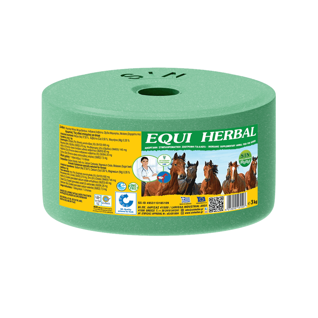 EQUI HERBAL es un bloque nutricional especializado formulado con sodio, magnesio, calcio, oligoelementos esenciales, vitaminas y una mezcla herbal premium, diseñado para apoyar a los caballos mediante acción fitogénica natural. Esta combinación única mejora la función digestiva, refuerza la inmunidad y promueve el equilibrio respiratorio y metabólico sin utilizar aditivos químicos.