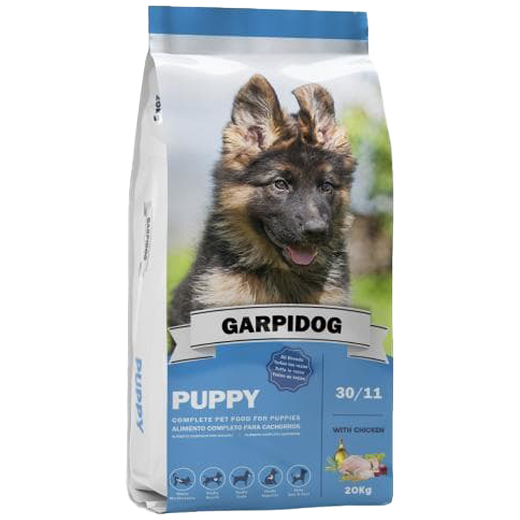 Offrez à votre jeune chien le meilleur départ avec cet aliment complet spécialement formulé pour les chiots. Cette recette très nutritive présente une teneur élevée en protéines et en matières grasses, avec 30% de protéines brutes et 11% de matières grasses brutes pour soutenir une croissance active. La composition inclut des céréales, de la viande et des dérivés animaux, des extraits de protéines végétales, des huiles, des graisses et des minéraux. La formule est enrichie en niveaux élevés de vitamines, notamment 17 600 I.U. de vitamine A et 1 920 I.U. de vitamine D3. Elle fournit également des oligo-éléments essentiels comme le zinc et le cuivre. Disponible en sac de 20 KG.