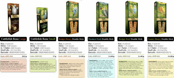 Il est donné aux oiseaux en le suspendant dans leurs cages. Gardez toujours de l’eau fraîche et propre dans la cage.