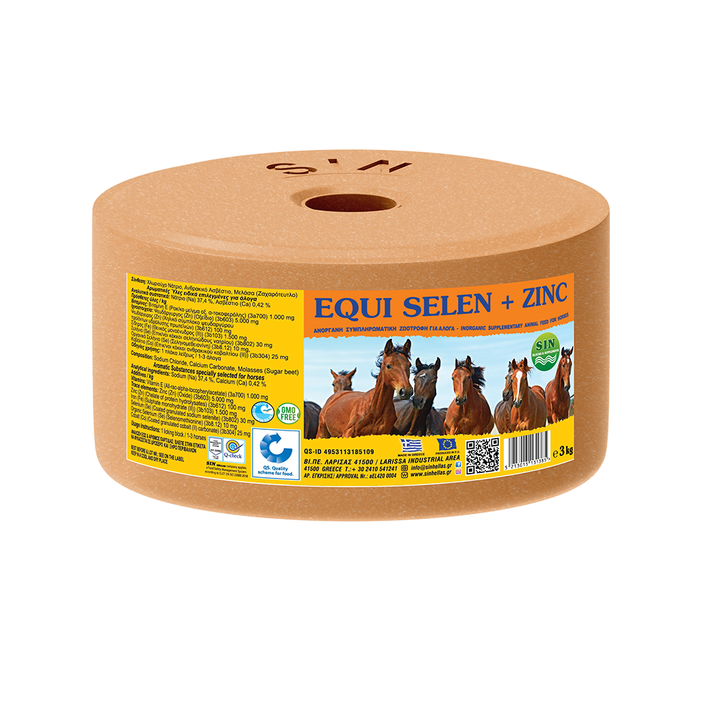 EQUI SELEN ZINC is a specialized equine supplement designed to strengthen antioxidant defenses, support muscle function, and enhance overall health. Formulated with Sodium, Calcium, premium trace elements, essential vitamins, natural molasses, and concentrated Zinc & Selenium, it provides the nutrients horses require to maintain cellular protection, metabolic balance, and performance readiness.