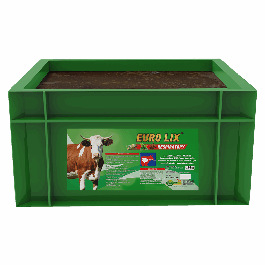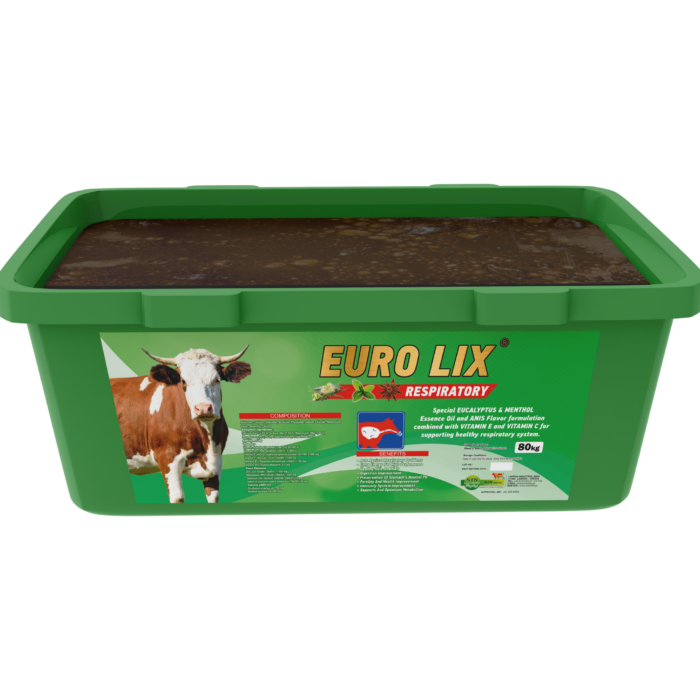By delivering a balanced blend of minerals and vitamins, EUROLIX ULTRA BEEF RESPIRATORY helps prevent deficiency-related behaviors such as soil eating, wall licking, or ingestion of non-feed materials. The inclusion of respiratory-supportive ingredients helps maintain clear airways and reduce the risk of respiratory issues, particularly in stressful environments or dusty conditions.