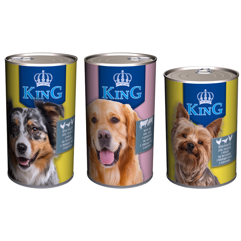 Çdo qen meriton një vakt që fuqizon aventurat e tij dhe kënaq dëshirat e tij. Seria KING Canine është krijuar për pronarët që refuzojnë të komprometojnë cilësinë. Recetat tona përfshijnë mish të pasur dhe të shijshëm të gatuar ngadalë në lëngjet e veta për të ruajtur shijen dhe ushqyeshmërinë. Qoftë që qeni juaj shijon energjinë e bollshme të Viçit ose proteina të pastra të Shpendëve, formula jonë ofron një dietë 100% të plotë dhe të balancuar.